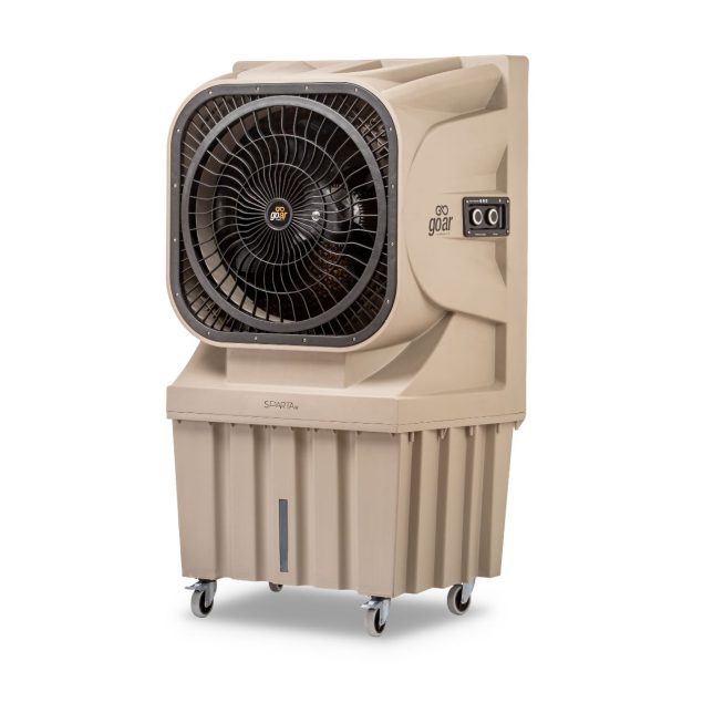 Climatizador evaporativo industrial portátil para resfriamento e ventilação de ambientes amplos